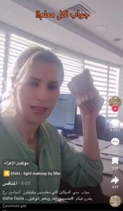صورة شاشة للسمو وهي تعرض الأموال على تيك توك وتدغي أنها من قضايا تم ربحها
